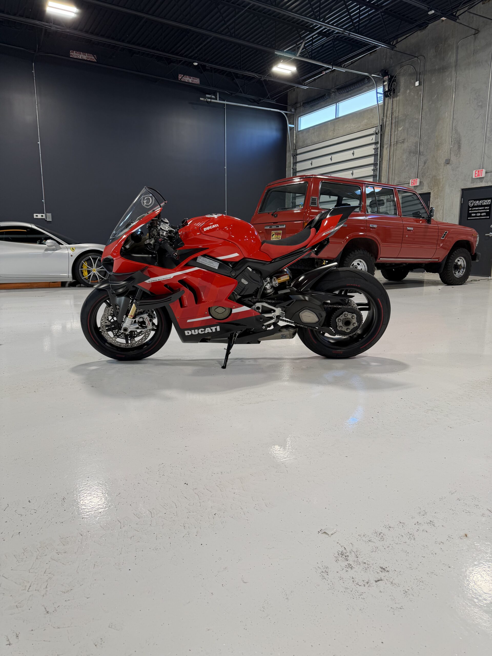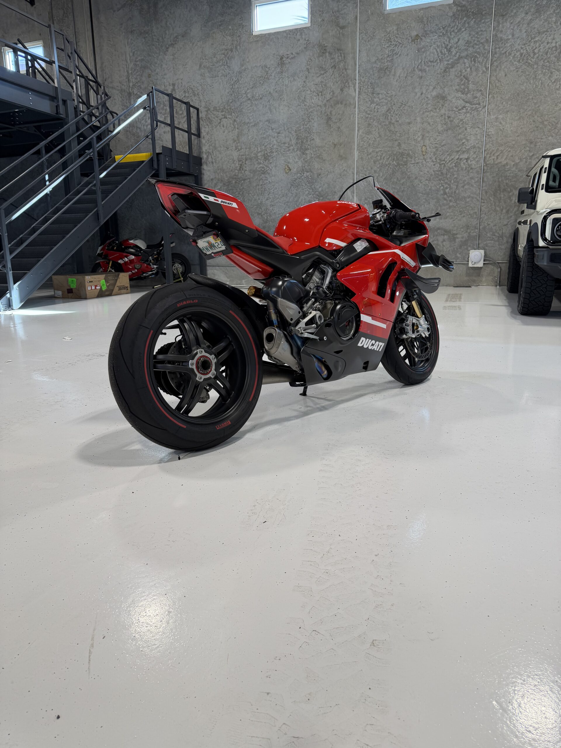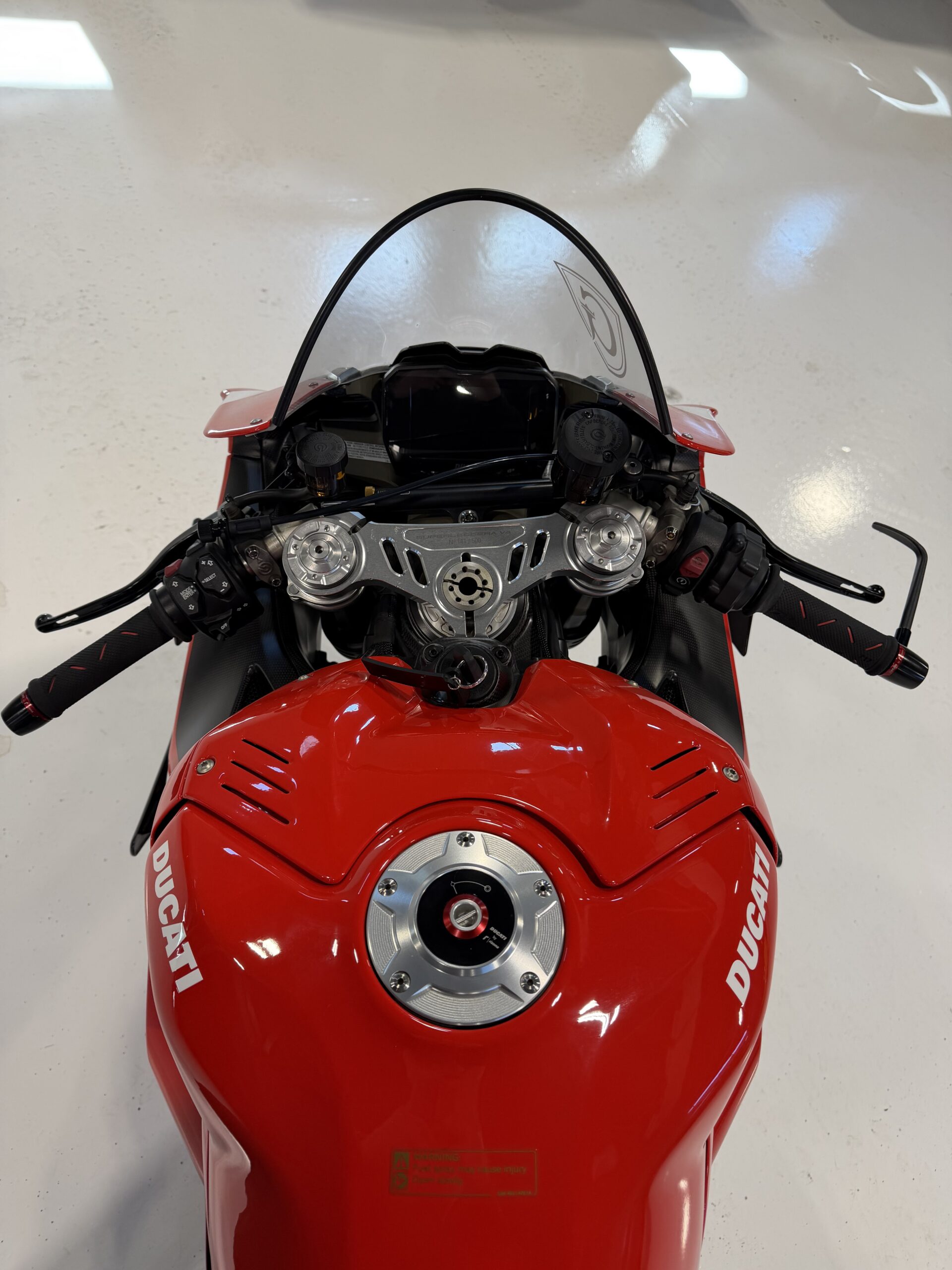 Ducati’s most advanced superbike ever produced. This 2020 V4 Superleggera is a numbered, limited-production machine (only 500 worldwide) and represents the pinnacle of Ducati engineering.
