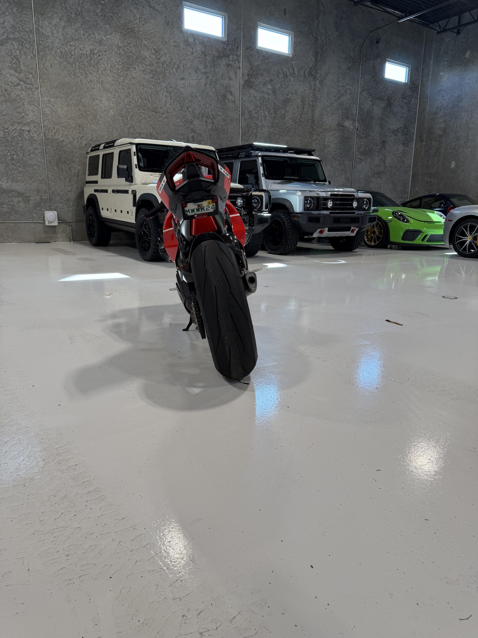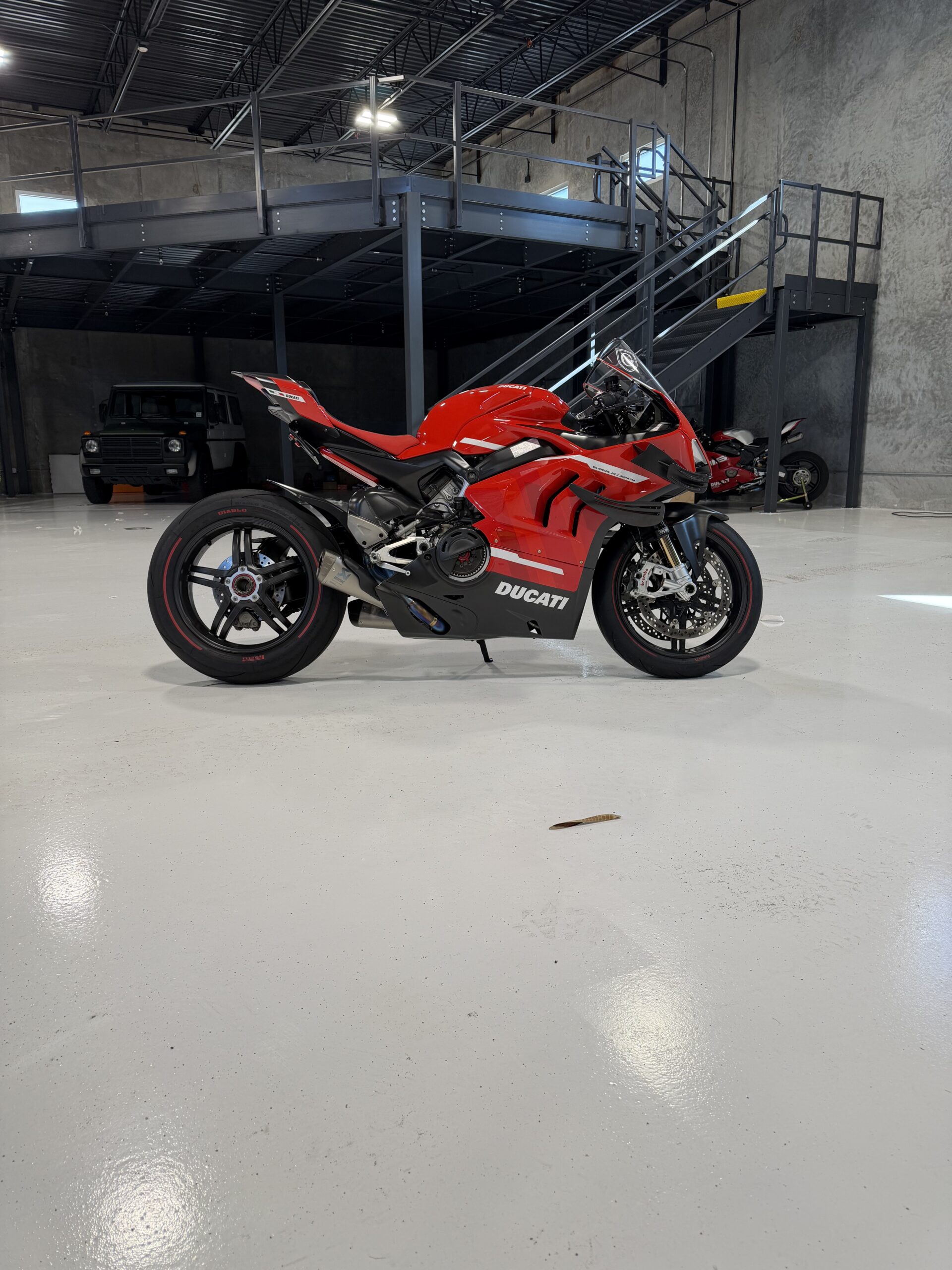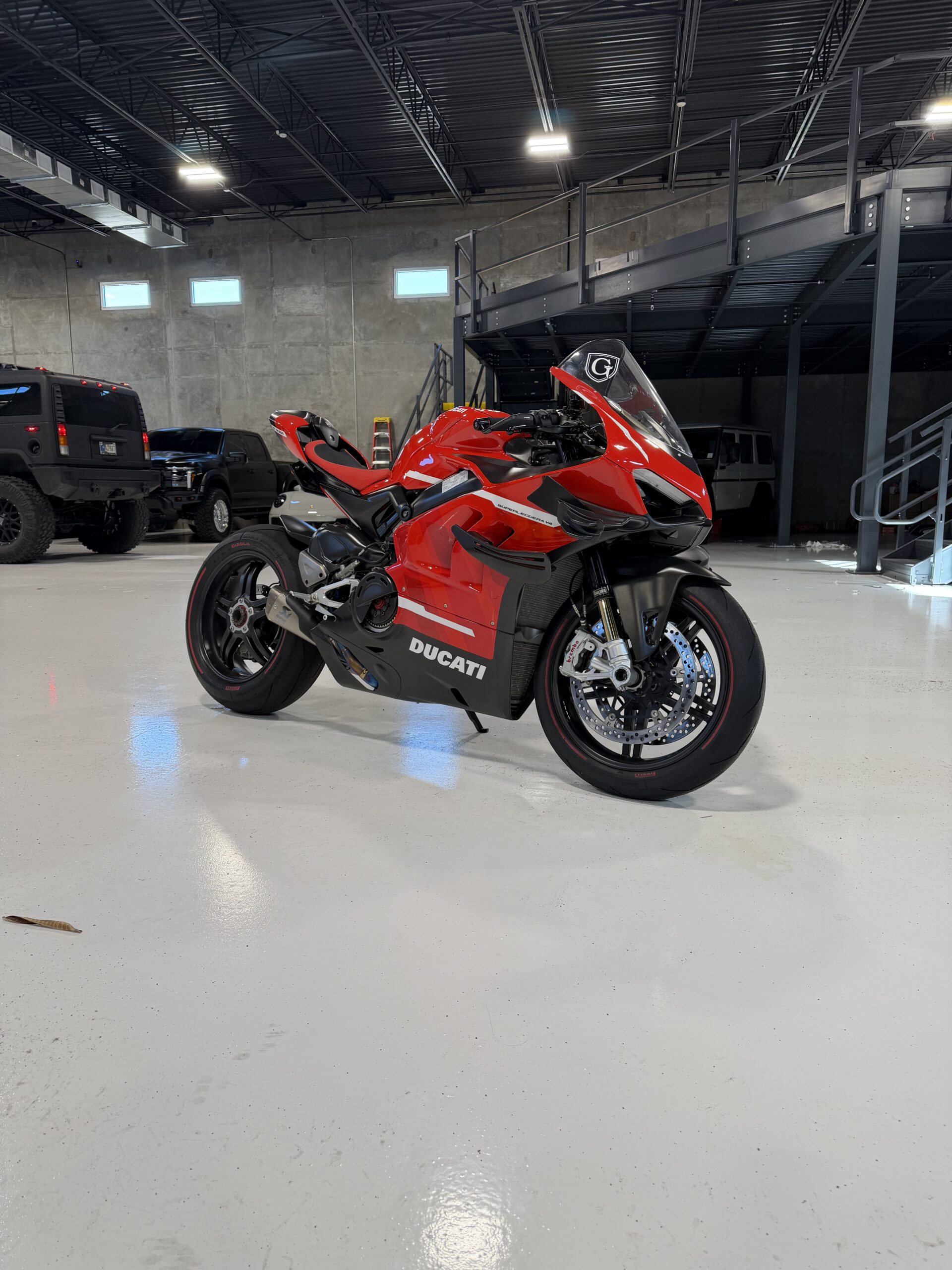 Ducati’s most advanced superbike ever produced. This 2020 V4 Superleggera is a numbered, limited-production machine (only 500 worldwide) and represents the pinnacle of Ducati engineering.